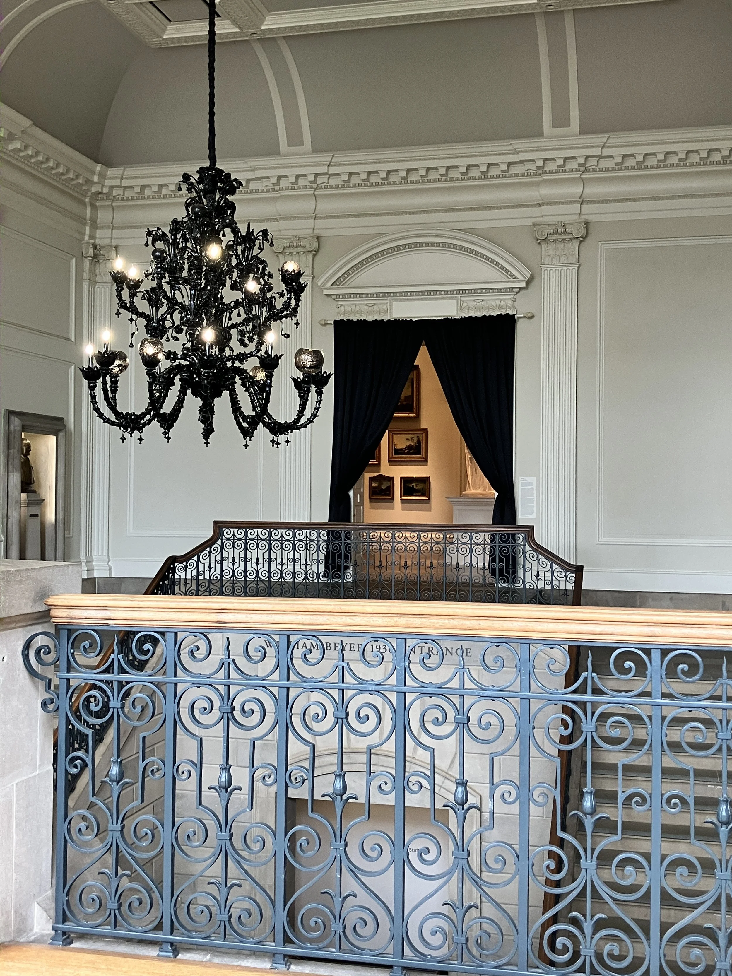 Here is a chandelier, “No Way But This,” the first EVER made from black Murano glass, by Fred Wilson, an interdisciplinary artist born the same year as my mom. “The title of the chandelier is a quote from Othello, referencing the play's exploration of prejudice and power.”