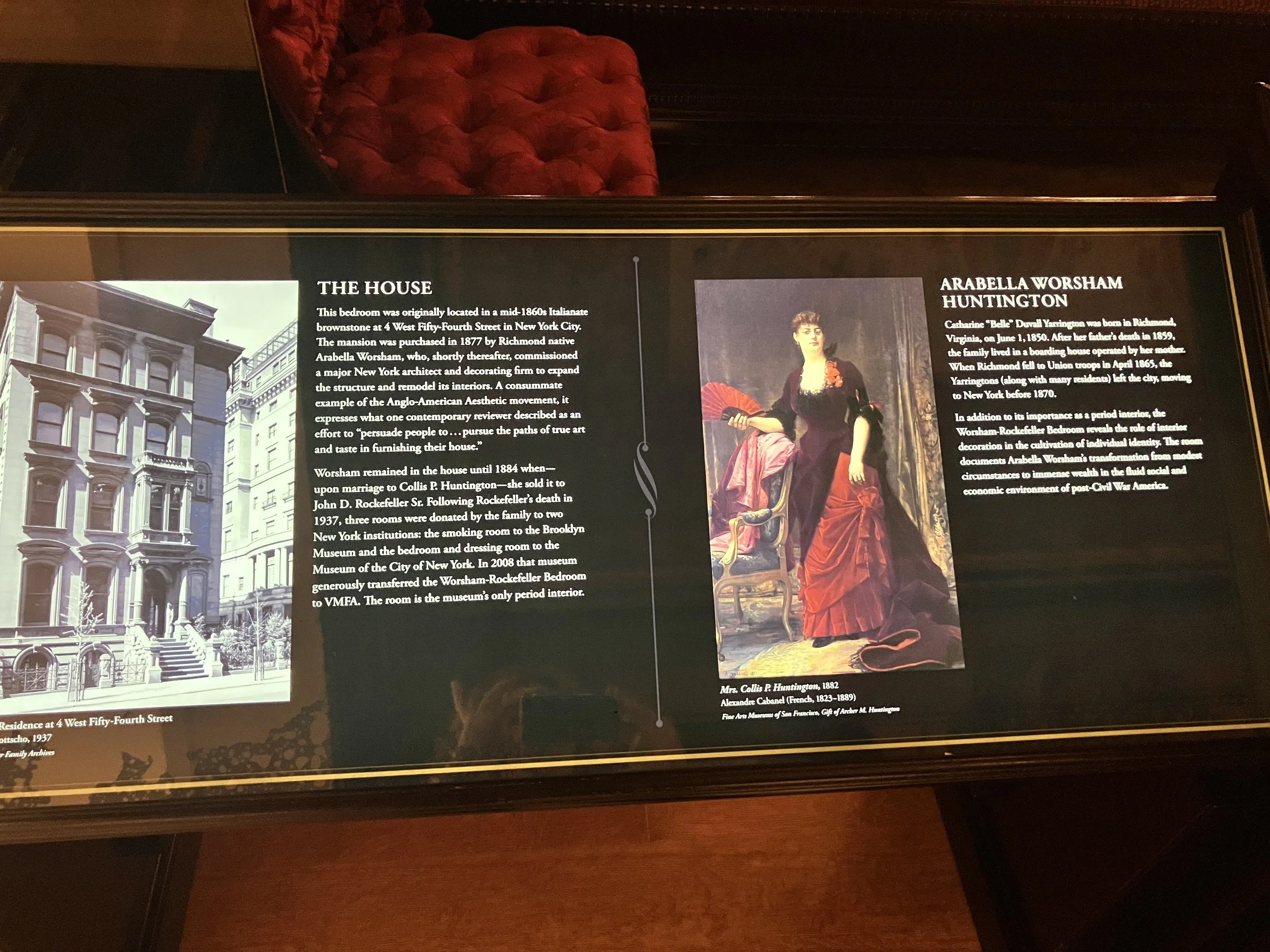 Here is the plaque to a room from a Gilded Age mansion that once belonged to a classic three-named Richmond woman. Notice the curious gap in her bio between losing and gaining everything.